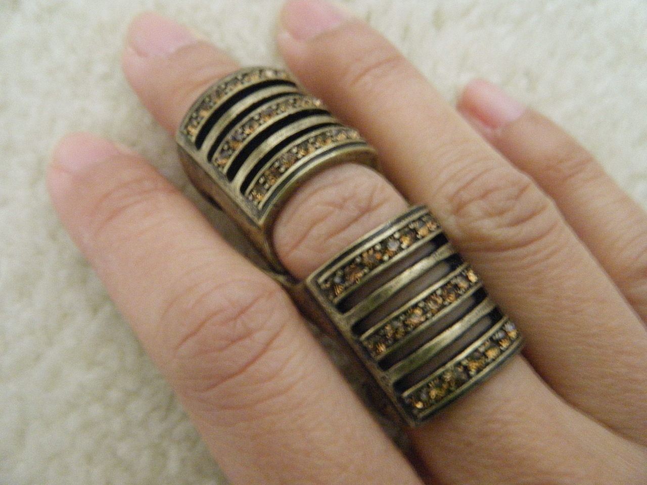 (New with tags) Antique Gold Knuckle Ring with Brown Gems